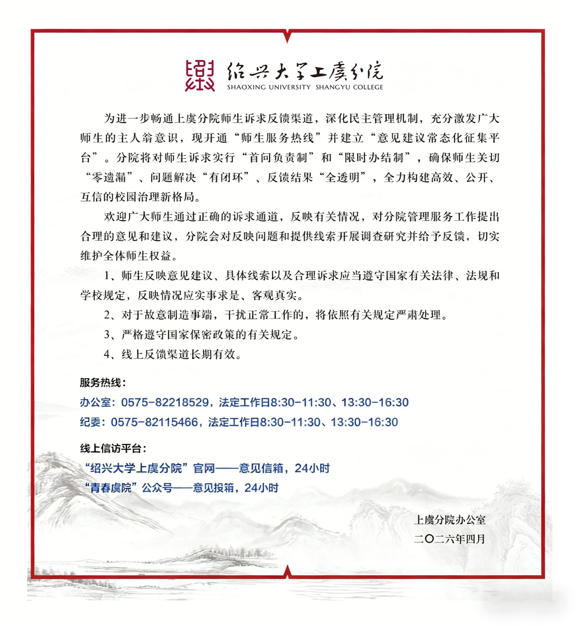招生热线:0575-82185672 院办电话:0575-82212785 | 版权所有:绍兴大学上虞分院